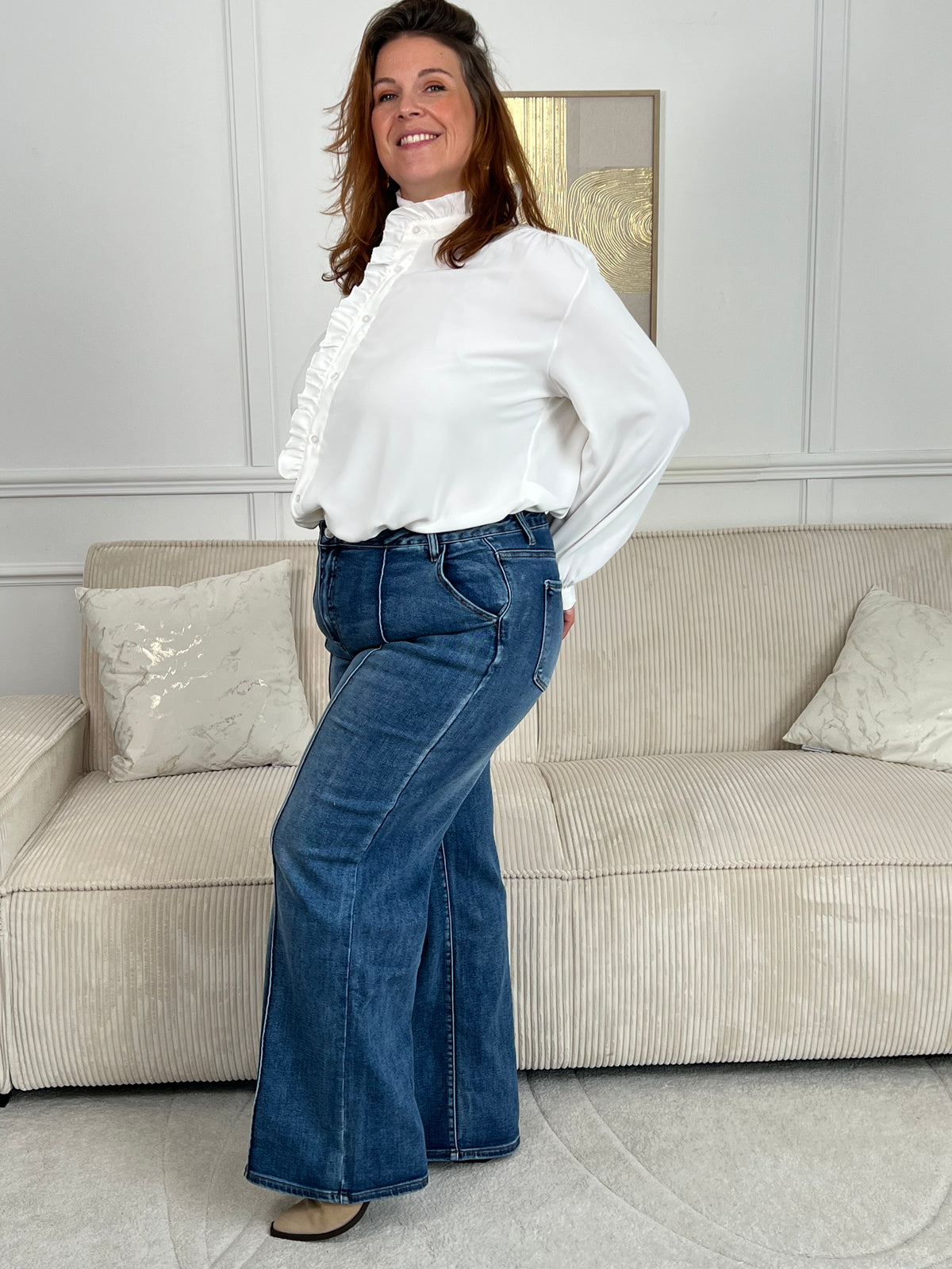 Jean bleu wide leg grande taille : Aelios