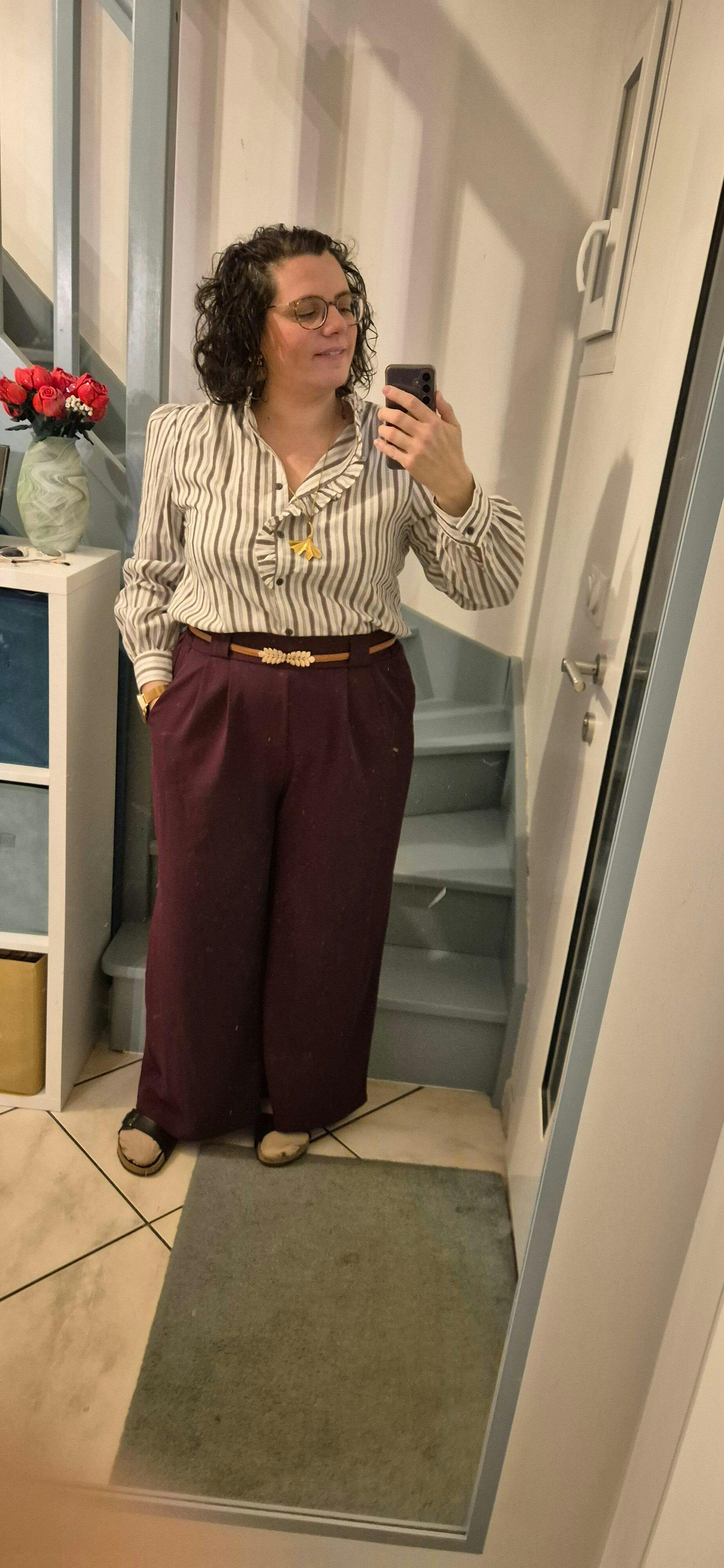 Amélia mesure 164 cm et porte la taille 44/46 pour son 46 habituel.