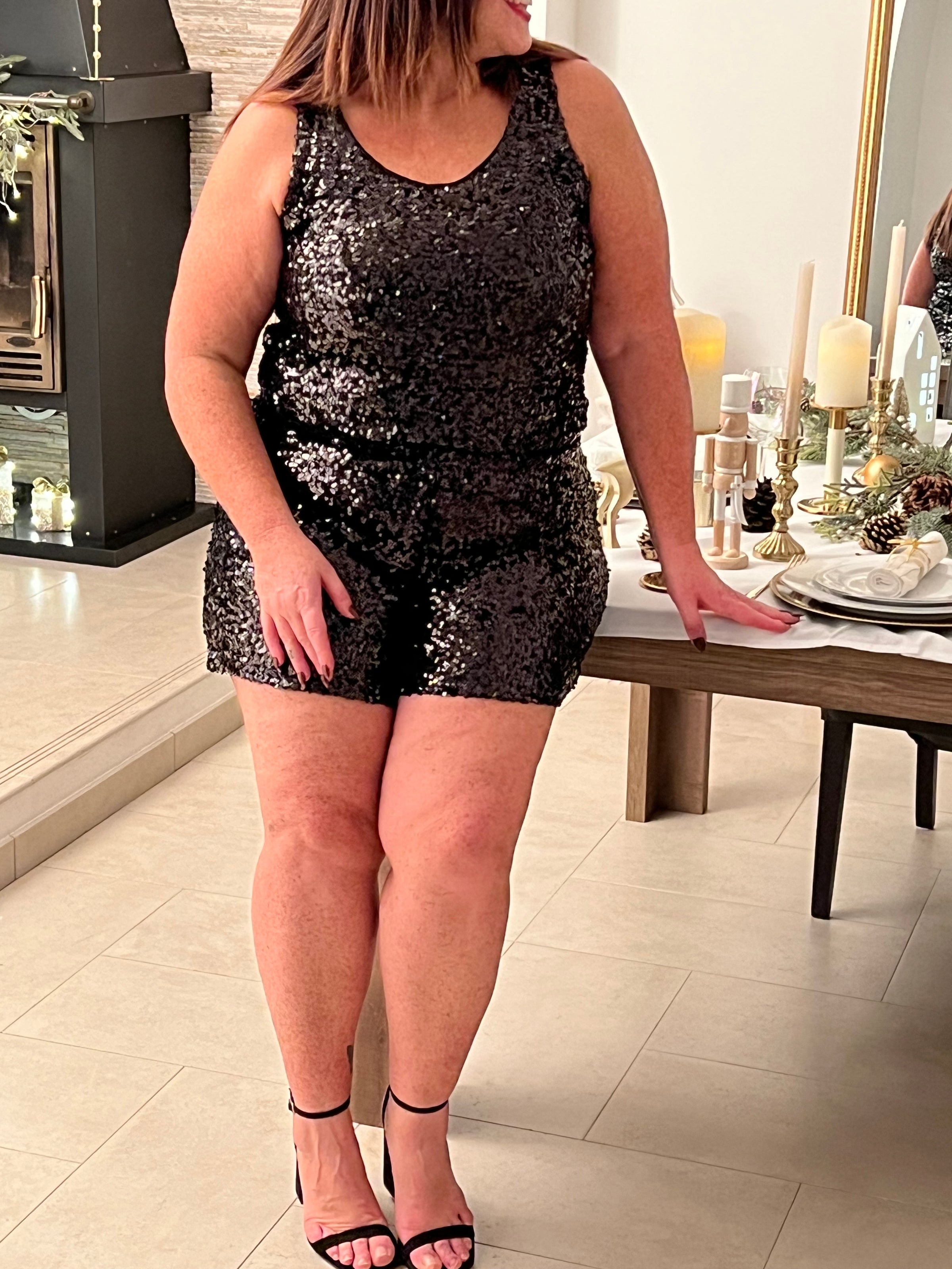 Le top Charlize en noir sublime votre silhouette avec ses sequins noirs scintillants. Sans manches et col rond, ce top grande taille offre élégance et confort grâce à sa doublure intérieure. Une pièce intemporelle pour briller en toute confiance.