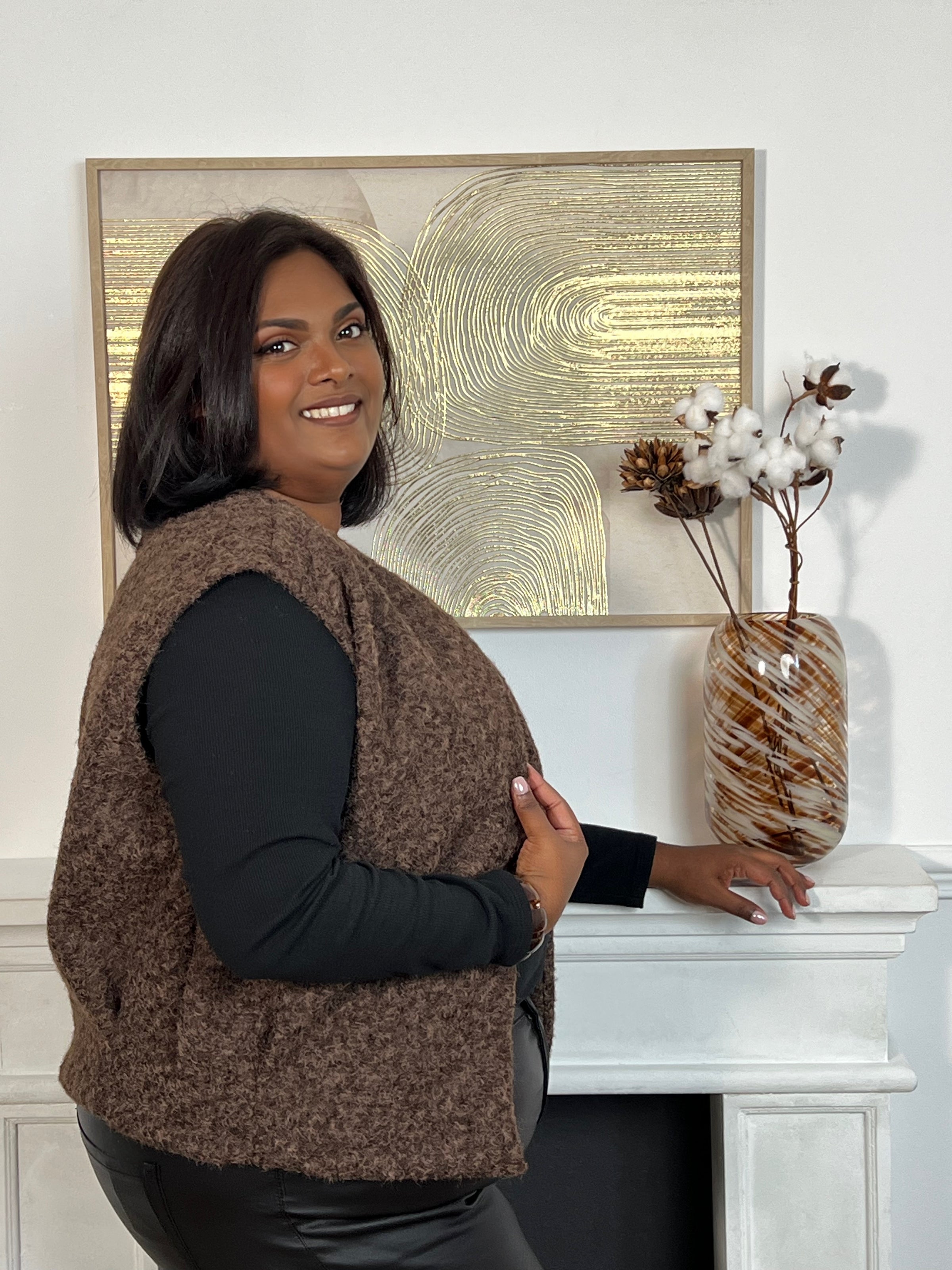 Découvrez notre veste sans manches femme couleur marron, à l’effet moumoute tendance et douce. Une pièce moderne et confortable, idéale pour compléter vos tenues d’automne et d’hiver.