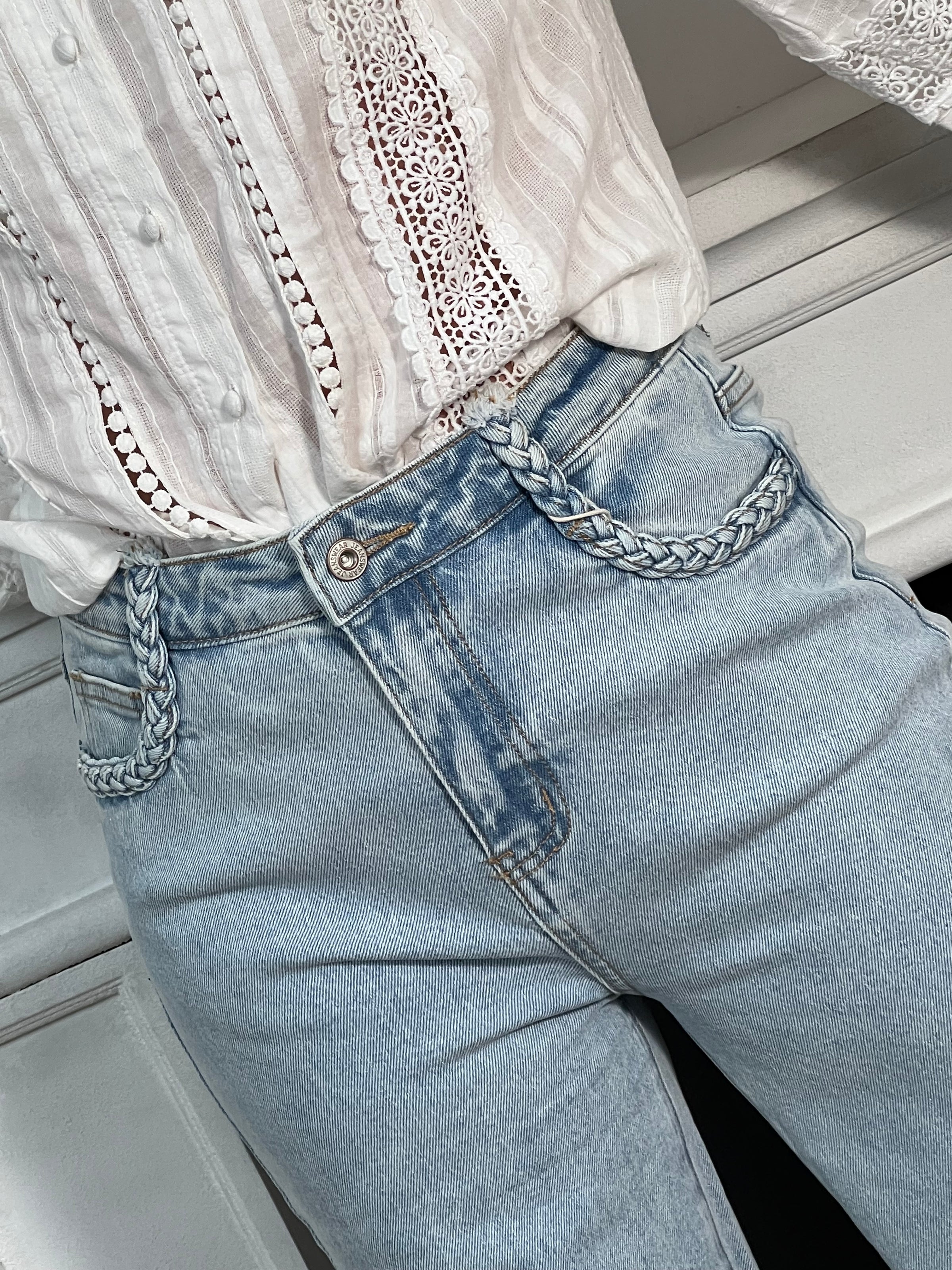 Jean bleu clair avec détails tressés femme