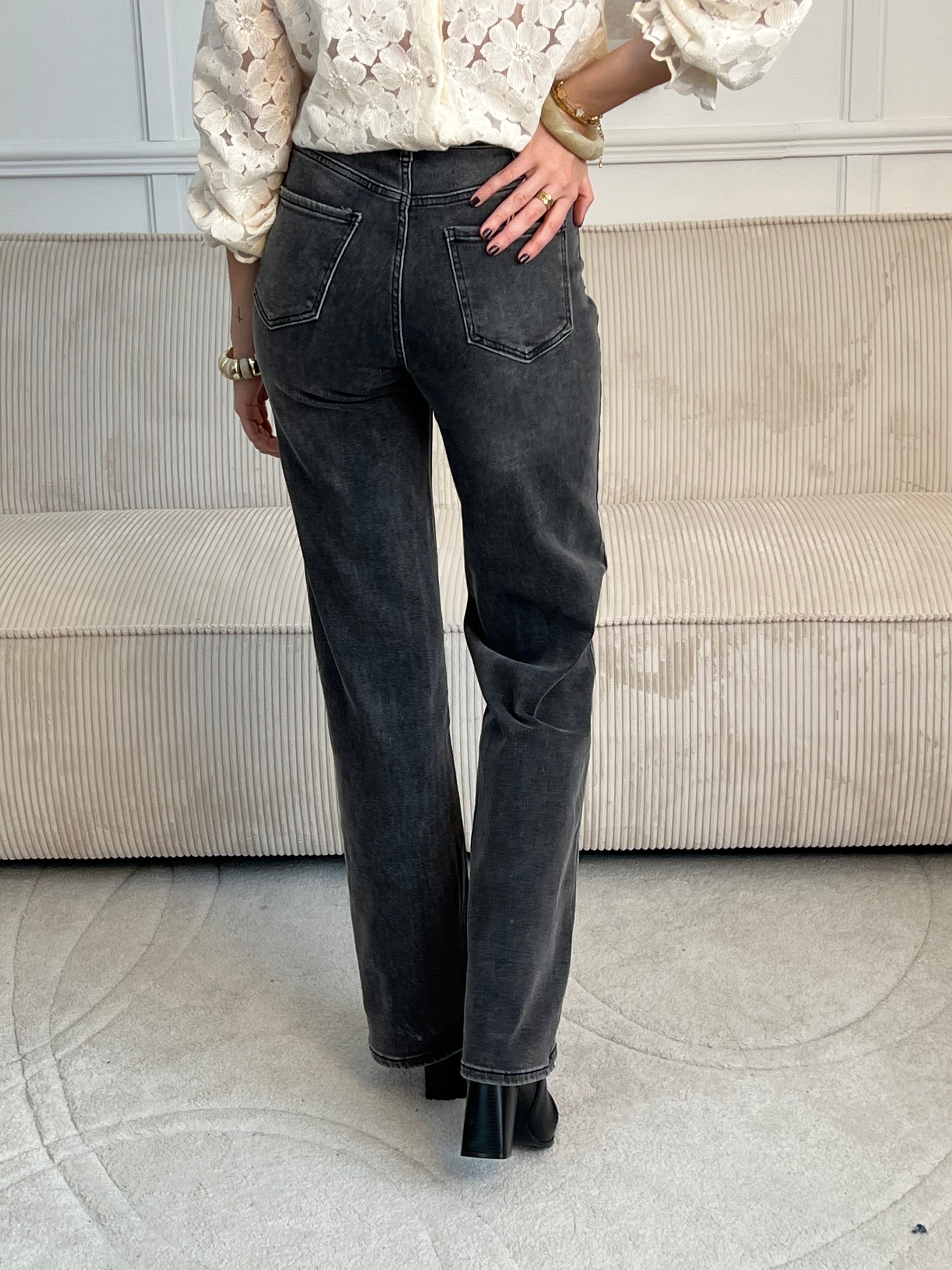 Découvrez le Jean gris tall, conçu pour les silhouettes élancées. Avec sa coupe wide leg généreuse et flatteuse, ce jean offre confort et style sans compromis.
