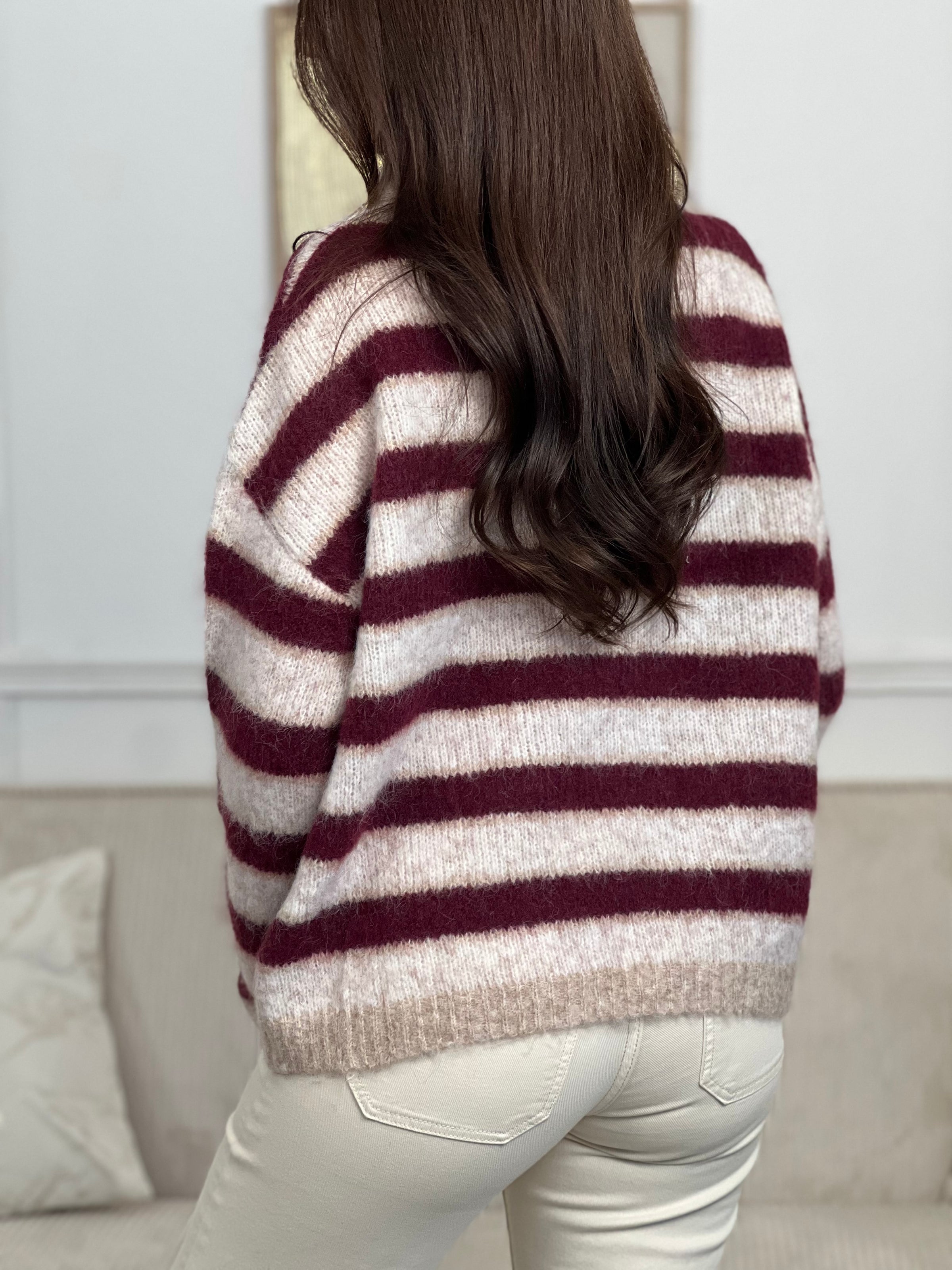 Pull rayé beige et bordeaux : Balya