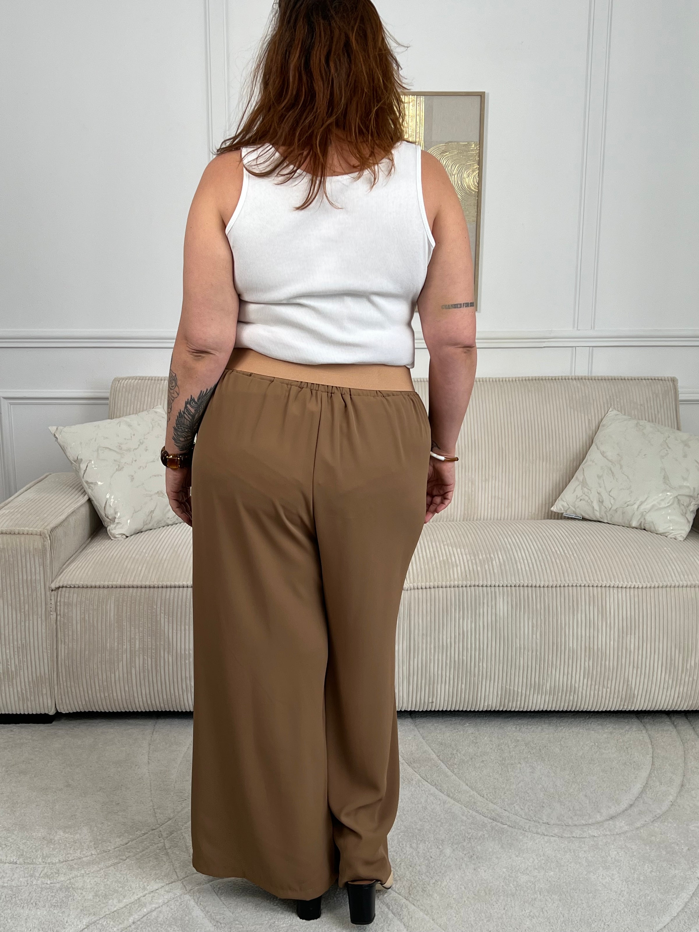 Ce pantalon camel coupe droite grande taille pour femme est l'élégance incarnée. Avec sa matière fluide, il offre un confort optimal et sa coupe droite flatteuse convient à toutes les morphologies. L'élastique au dos garantit un ajustement parfait et les passants pour ceinture sont pratiques. Ajoutez-y un style sophistiqué avec ses deux poches latérales.