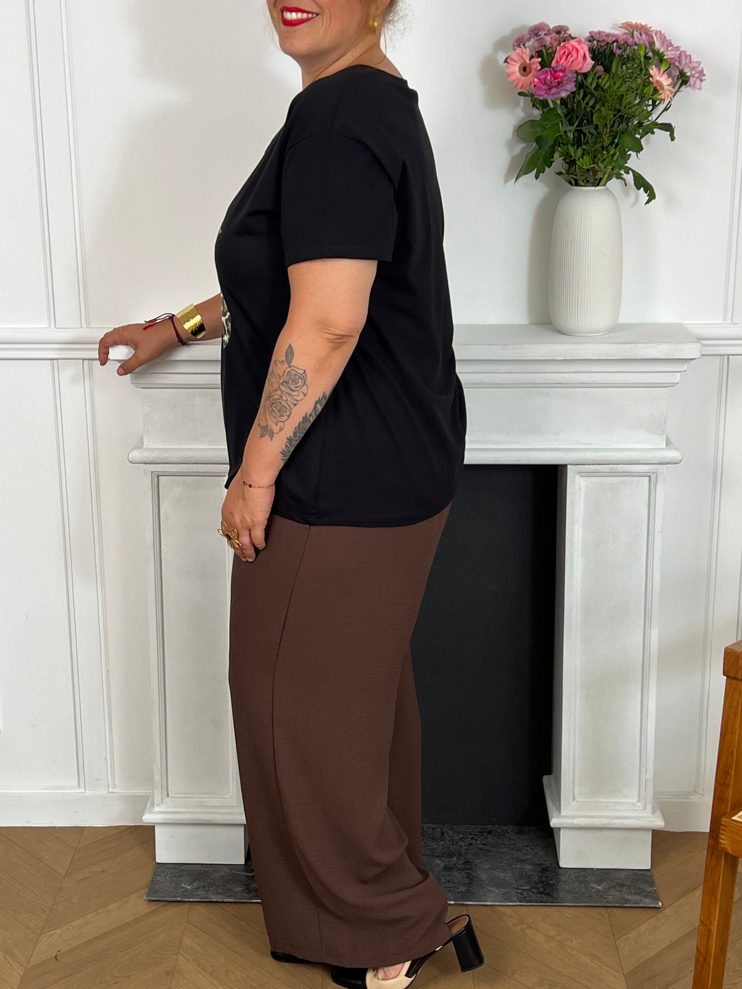 Le pantalon Layana, aussi ample que confortable, possède une taille élastique avec cordon pour un ajustement parfait. Avec ses 2 poches pratiques à l'avant, il est idéal pour un look décontracté et pratique.