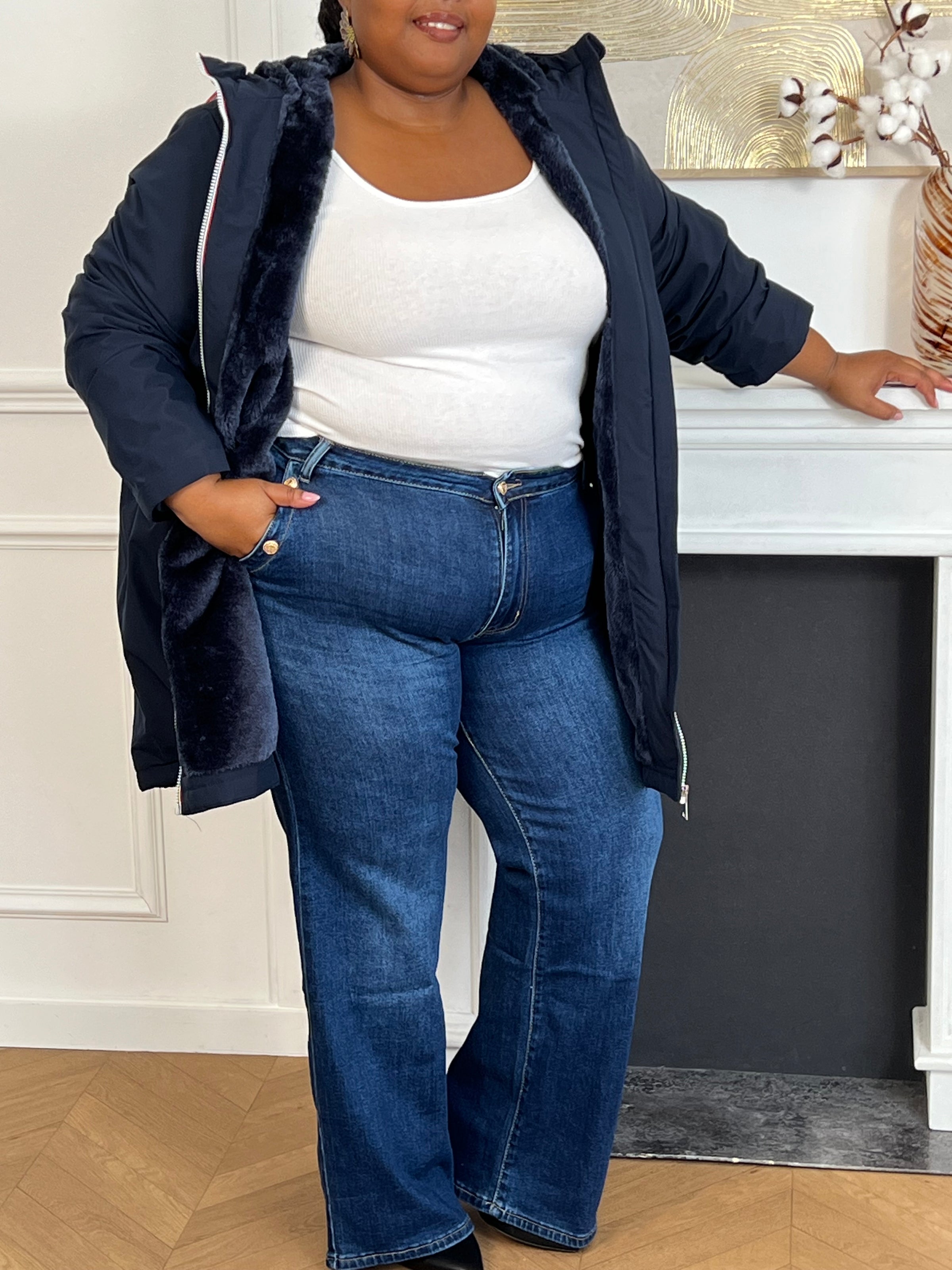 Ce manteau bleu marine combine style et chaleur avec élégance. Son intérieur fourré offre un confort douillet tout en vous protégeant du froid. Sa teinte bleu marine intemporelle et tendance en fait une pièce polyvalente, facile à assortir à toutes vos tenues d’hiver.